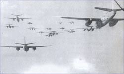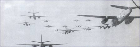 De improviso, el encanto telúrico se rompe: toma forma un enorme depósito de municiones, último bastión de los alemanes en un territorio casi liberado. Julio Gil Méndez, al frente del escuadrón de bombarderos aliados, abre fuego sobre el depósito, que comienza a levantar columnas de humo. Los alemanes responden con un carnaval de fuegos: cañones, granadas anti aéreas y el despegue de aviones caza germanos.