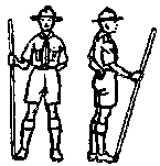 Si se deja que los pies se mojen con el sudor o con la humedad exterior, la piel se suaviza y muy pronto se ampolla con cualquier ligera presión de la bota y quedan en carne viva. Por tanto hay que conservar los pies lo más secos posible y para hacerlo hay que usar buenos calcetines de lana. Si un hombre usa calcetines delgados de algodón o seda, enseguida puede decirse que no es andarín. A una persona que por primera vez va a una larga excursión a pie se le llama "Pie Tierno" porque, generalmente, le duelen los pies, hasta que, por la experiencia, aprende a conservarlos en buen estado. Si vuestros pies siempre transpiran mucho, es de utilidad espolvorearlos con un poco de bórax, almidón y óxido de zinc mezclados en partes iguales. Este polvo deberá ser untado bien entre los dedos, para evitar el que ahí se formen callos. Los pies pueden endurecerse hasta cierto punto sumergiéndolos en alumbre y agua, o en agua con sal. Lavaos los pies todos los días. FORMACIONES Movimiento de tropa Los Scouts deberán saber moverse rápidamente de un punto a otro, por patrullas o Tropas, en buen orden. Los ejercicios de movimientos rápidos y ordenados bien practicados, capacitan y hacen a los muchachos elegantes y ágiles; dan fuerza a los músculos que sostienen el cuerpo y conservando éste derecho, el corazón y los pulmones tienen campo suficiente para trabajar y los órganos interiores se conservan en posición adecuada para la digestión conveniente de los alimentos. |