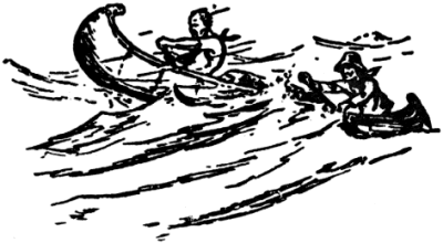 También puede acontecer que os toque presenciar esa escena, tan desagradable, de alguien que se está ahogando. Si sabéis nadar, os tiraréis en seguida y tomaréis al ahogado en forma apropiada para sacarlo a la orilla. ¡Habréis salvado la vida de un semejante¡ Pero ¿Si no sabéis nadar? Entonces será horrible para vosotros. Sabéis que debéis hacer algo más que gritar pidiendo auxilio mientras vuestro semejante hace esfuerzos para salvar su vida, agotándose poco a poco a vuestra propia vista. No describiré la escena. Es una horrible pesadilla y os quedará toda la vida el remordimiento de que en parte fuisteis culpables de que aquel pobre se ahogara. ¿Por qué culpable? Porque si hubierais sido un verdadero Scout, sabrías nadar y lo hubieras salvado. Dirigiendo un bote También si vivís cerca del agua, es preciso saber dirigir un bote. Debéis saber como conducirlo apropiadamente, para atracar junto a un vapor, o en el muelle, ya sea remando o timoneando para describir un amplio círculo y llegar a su lado con la quilla en la misma dirección que la del barco, o contra la corriente. Debéis saber remar a compás con el resto de la tripulación, así como conducirlos enteramente solos con un par de remos y aún con un remo solo, maniobrando por popa. Remando, girad el remo para que la resistencia al viento no disminuya la marcha del bote. Debéis saber lanzar un cabo de modo que podáis enlazar otro barco o un pilar del desembarcadero y también saber recibir y asegurar una amarra que se os lance. Igualmente lanzar un salvavidas a una persona que se está ahogando. Es necesario saber construir una balsa con lo que se tenga a mano: tablas, rollizos, toneles, sacos de paja, etc., porque puede presentarse el caso de tener que atravesar un río con armas y bagajes, y no disponer de ningún barco.Excursiones en bote En