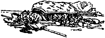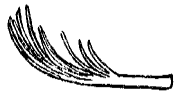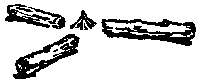 Para hacer vuestra fogata, colocad unos cuantos palos sobre el suelo, horizontalmente, en especial si el suelo está húmedo. Sobre este piso, colocad yesca, virutas, astillas o cualquier otro material que arda fácilmente y, sobre él, en forma de pirámide, poned ramas, astillas y rajas de madera seca, apoyadas unas sobre otras en su extremidad superior. A esto se le llama leña. Un buen encendedor puede hacerse con un palo al que se le hagan varias cortaduras como las que muestra el grabado. A éste se le llama palo encendedor. Si se coloca con las cortaduras hacia abajo, hacia el suelo, pronto arde y alza llama. Sobre el encendedor se colocan algunos palos más gruesos para hacer la fogata. |