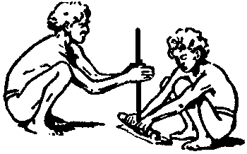 ¿Qué haríais si tuvieseis necesidad de encender una fogata y no tuvieseis fósforos? La forma en que un muchacho zulú vence esa dificultad es buscando un pedazo de madera dura, de forma cilíndrica, y haciendo con él un agujero en otro de madera suave. Haciendo girar rápidamente con las manos el pedazo de madera dura, dentro del agujero, logra formar ascuas con las que se puede prender fuego al pasto seco, o a un pedazo de corteza de árbol también seca, y con esto encender su fogata. |