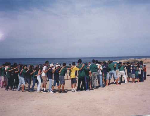 Nuestro Grupo completo, durante el primer día de reunión en el 2001 haciendo algunas danzas