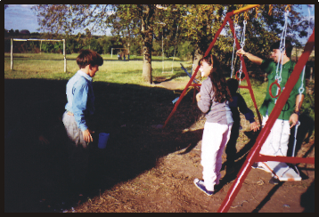 Algunos chicos de la escuela "Canada" durante la actividad realizada por los rovers del equipo "Antorcha" en su primer servicio, en mayo del 2001