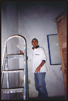 Sebastián Furtado pintando el salón de la escuela "Canada" durante el primer servicio del equipo rover "Antorcha", en mayo del 2001