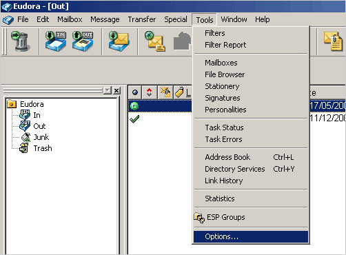 Eudora debe dirigirse a Tools | Options
