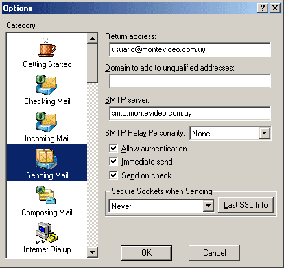 En el campo SMTP server escriba smtp.montevideo.com.uy En