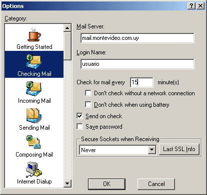 izquierda. Verifique que en el campo Mail Server aparezca mail.montevideo.com.uy.