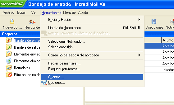 IncrediMail debe dirigirse a Herramientas | Cuentas