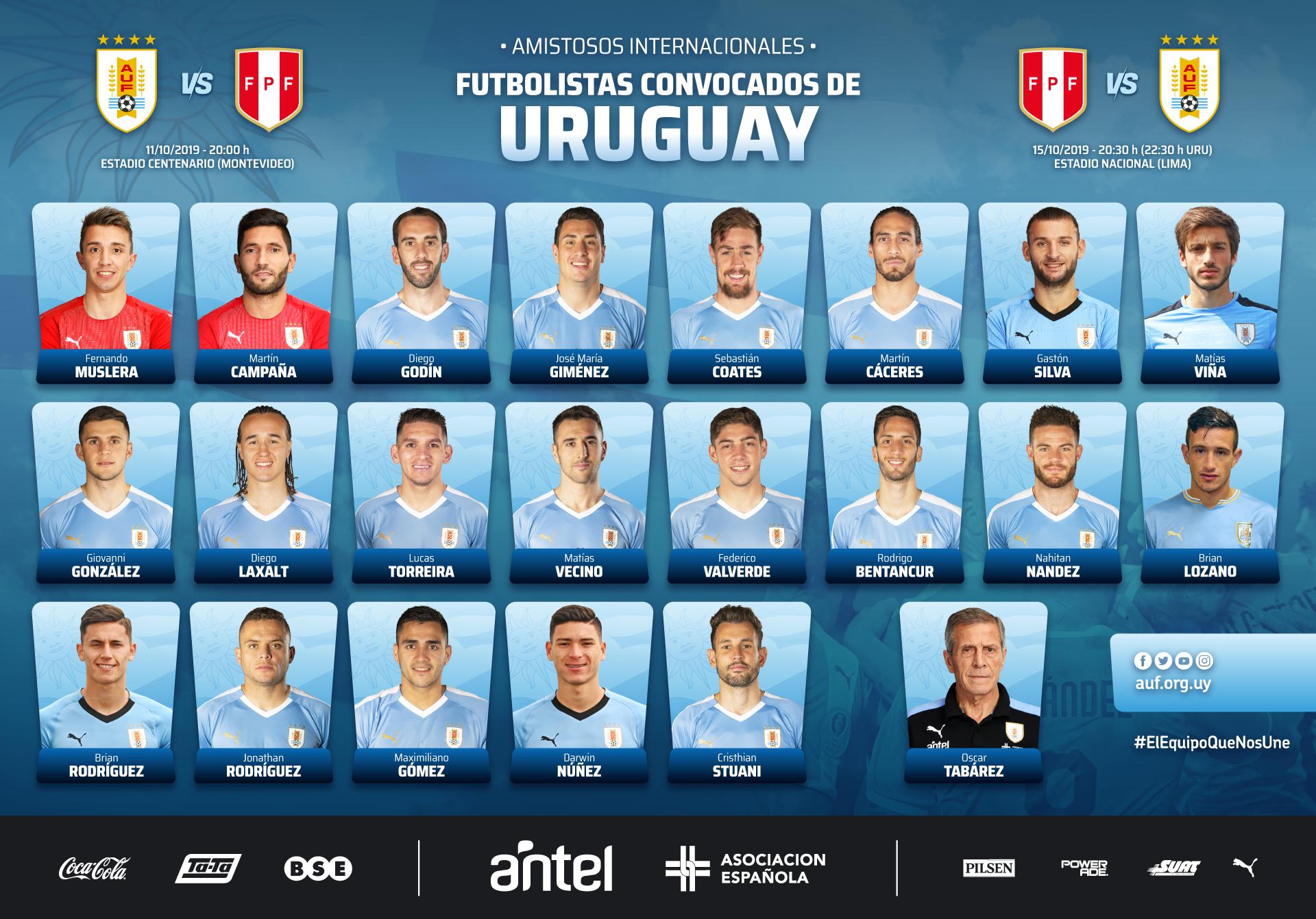 El entrenador de la selección uruguaya de fútbol, Óscar Washington Tabárez, dio a conocer la lista de 21 convocados para los duelos amistosos ante Perú con las ausencias de Luis Suárez, Edinson Cavani y Giorgian de Arrascaeta, todos por temas físicos.