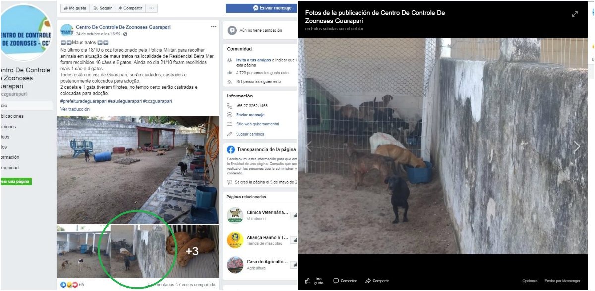 Otra foto muestra a perros en lo que parece ser un patio de tierra de una vivienda. En realidad, la imagen fue tomada en octubre de 2019 en Brasil, en el marco de un operativo contra una familia acusada de fabricar chorizos con carne de perro y que terminó con tres detenidos en Espírito Santo.