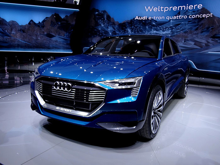 Audi E-tron Quattro Concept: el crossover cupé de Audi combina aerodinámica eficiente (coeficiente de 0,25 cx) con trazos marcados, que indican el futuro del diseño de la marca: parrilla plateada y protuberante, líneas rectas y entalladas. Los tres motores eléctricos combinados rinden hasta 504 cv y la autonomía del conjunto de baterías es de hasta 500 km. El E-Tron Quattro está montado en la plataforma modular MLB, para motores longitudinales, y es mayor que el Q5 y menor que el Q7. O sea: está pensado para competir con el BMW X6 y el Mercedes-Benz GLE Coupé. En el interior, un sistema OLED en las pantallas multimedia para pasajeros delanteros y traseros dispensa botones.