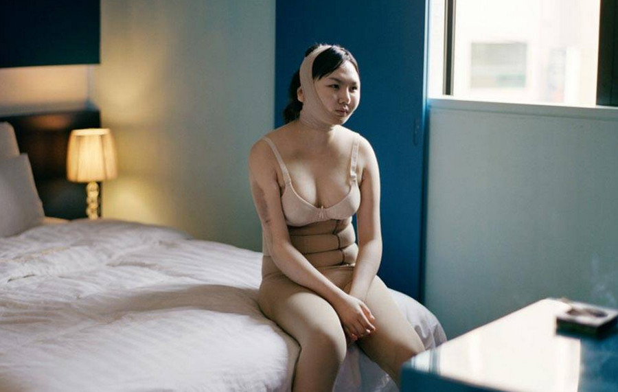 La serie Beauty Recovert Room (sala de recuperación de la belleza, en traducción libre) de la artista surcoreana afincada en Nueva York Ji Yeo, muestra el sacrificio físico al que las mujeres del país asiático se ven sometidas para cumplir con las presiones sociales que las empujan a procurar un tipo de belleza más "occidental".