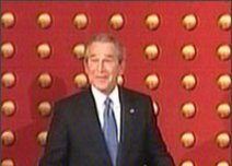 Cuando ante más de 2.600 personas llegó el momento de que el presidente empezara a hablar, colocaron un segundo atril en la tribuna y, de repente, no se levantó un Bush, sino dos.