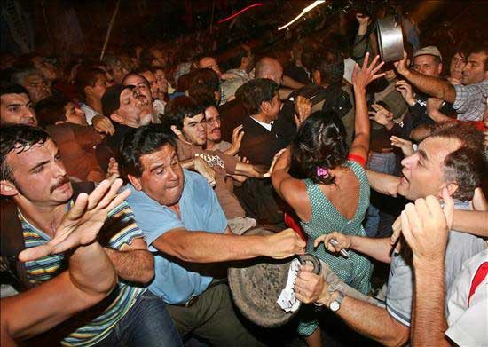 Los piqueteros, liderados por el peronista Luis D'Elía, titular de la Federación de Tierra, Vivienda y Hábitat, y el Movimiento Evita, encabezado por Emilio Pérsico, salieron al paso de miles de manifestantes en la Avenida de Mayo, a unos cientos de metros de la Plaza de Mayo y de la Casa de Gobierno.