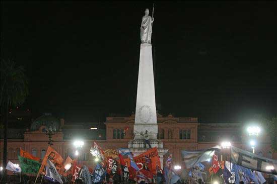 En la noche del martes, miles de manifestantes ocuparon las calles de Buenos Aires -principalmente en las zonas de Barrio Norte y Recoleta- y marcharon rumbo a Plaza de Mayo, donde tuvo lugar un "cacerolazo" en apoyo al conflicto del sector agropecuario que bloquea varias rutas argentinas, y en rechazo al duro discurso de la presidente Cristina Kirchner, que se negó a "negociar con cortes".La numerosa manifestación ocupó la plaza en el anochecer del martes, pero allí se toparon con grupos piqueteros simpatizantes del gobierno.