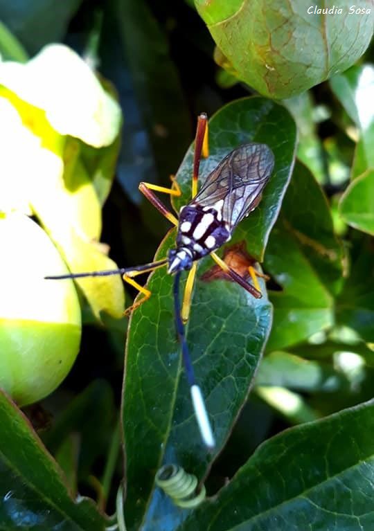 Curiosidades: vuela bastante rápido, siendo dificultosa su captura. Es una especie mimética de avispas icneumónidas de la subfamilia Cryptinae. En este fenómeno (mimetismo) se observa una “especie modelo” que suele ser evitada por los predadores por su mal sabor o toxicidad y una “especie mimética” que suele beneficiarse al ser confundida con la anterior.