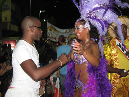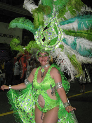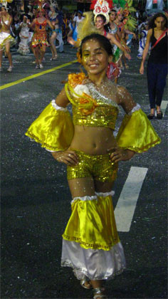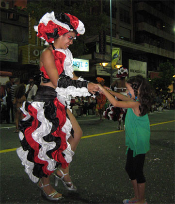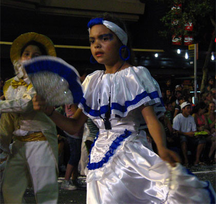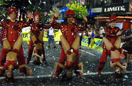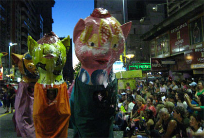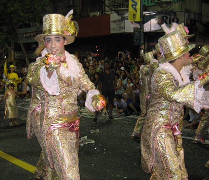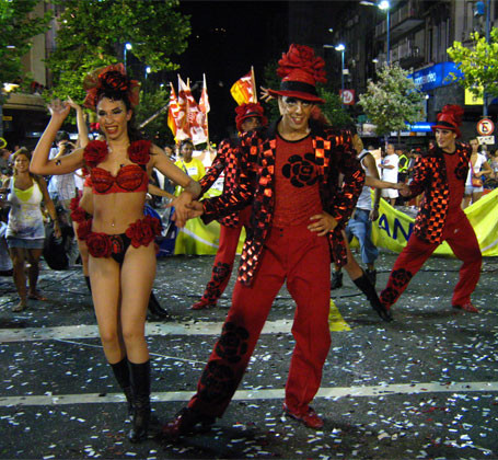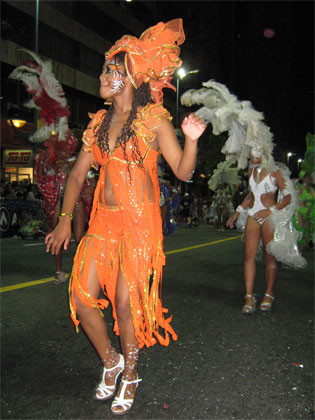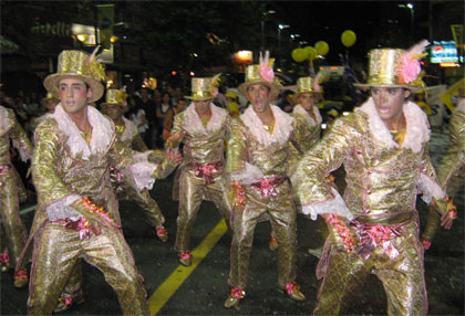 En total, unos 5.000 "carnavaleros", entre murguistas, parodistas, humoristas y sociedades de negros y lubolos, además de las reinas de la fiesta y representantes de escuelas de samba, desfilaron por las calles en honor al rey Momo.