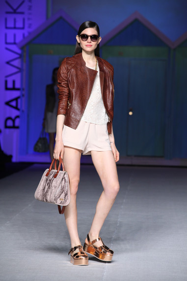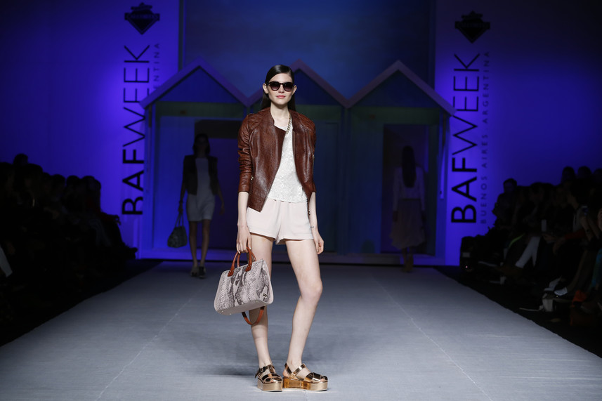 Las carteras en Python de tonos apastelados y las combinaciones de nude y metalizados en rose y cobrizo, fueron las destacadas en una colección "hiperfemenina".