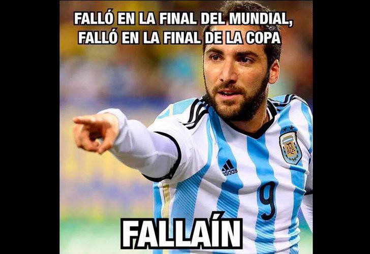 Los argentinos Lionel Messi y Gonzalo Higuaín fueron los jugadores más castigados por los ya clásicos memes después de la final de la Copa América. La patada de Gary Medel, el primer título de Chile y la nueva copa de Arturo Vidal también fueron motivo de burla.