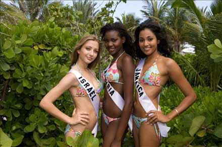 Las candidatas se mostraron hoy en el hotel camino del ensayo final sonrientes y de buen humor, especialmente Miss Venezuela, Miss República Dominicana y Miss Eslovaquia, quienes enviaron besos y saludos cariñosos a sus simpatizantes.