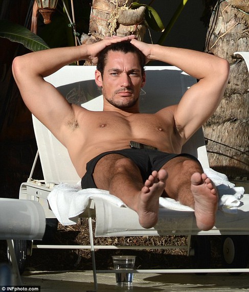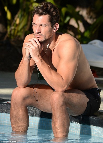 En las fotos que publicó el Daily Mail se puede apreciar al modelo escuchando música en sus auriculares y descansando en una reposera, al tiempo que exhibe su trabajado torso.
