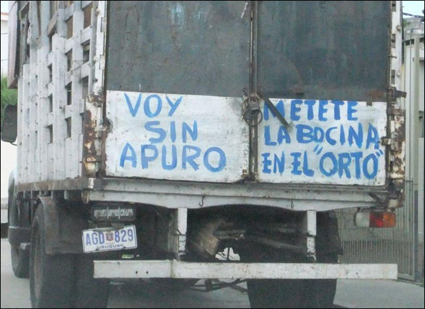 En nuestra décima entrega tenemos unas cuantas perlitas montevideanas y del interior, entre las que se encuentran un camión con una deliciosa y cortés leyenda, y un anuncio "prefecto".
