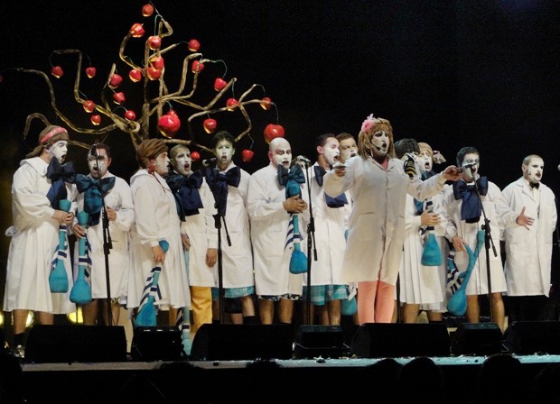 La historia pasa por Iba (Eva) y Hadan (Adan) que van desarrollando sus vidas en el marco de criticas políticas y sociales. En determinado momento dos componentes se ponen delante del escenario y con la batería y una guitarra acompañándolos generan, con mucho ritmo, la hilaridad de los espectadores. Es un momento muy disfrutable y con mucho humor. Otra gran candidata a pasar a la liguilla.