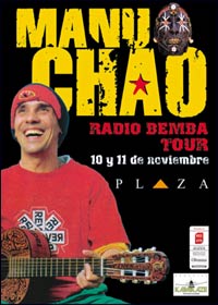Este jueves 10 y viernes 11 de noviembre, a partir de las 20.30 Hs, Manu Chao y Radio Bemba se presentan en el Complejo Plaza.