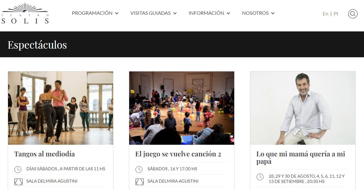"Incorporar más información y nuevos elementos comunicacionales -como imágenes de alta calidad, traductores, área de prensa o publicaciones, entre otros- es democratizar. Los portales institucionales tienen que cumplir la nada sencilla función de mostrar toda la información posible y necesaria, y a su vez, evitar confusión y navegación con demasiados clics; siendo una línea de fuego entre el público que la consulta y el teatro. Si tu web no refleja el contenido que querés transmitir, probablemente el visitante desista y busque otras opciones, por más que tus contenidos sean de excelencia. Por lo tanto, esta renovación beneficia porque aporta desde la empatía, siendo un sitio amigable que invita a la navegación y que por lo tanto los lleva a conocer el contenido que ofrece, y en consecuencia, que visiten el teatro", expresó a Montevideo Portal Yamandú Lasa, responsable de comunicación del Teatro Solís.