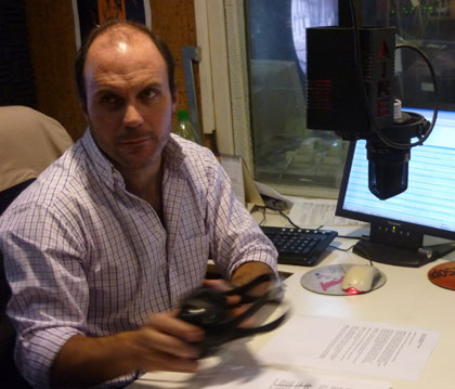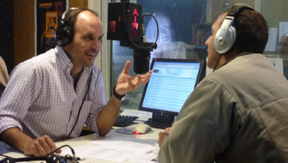 Yo llego de luna de miel en febrero de 2000 y me llaman de canal 12 y me dicen: “por tema presupuestal, el canal decidió prescindir de tus servicios”. Empecé a buscar trabajo y a los meses llamé a “Contraste”, la productora con la que veníamos haciendo el programa de sexo, y les propongo hacer un periodístico en FM. Nos reunimos con quien estaba a cargo de Sarandí, me tira una serie de preguntas de conocimiento político y cultural y me dice “vamos a hacer una prueba ahora”, y ahí improvisé y quedé contratado. Primero en FM y al año en AM, que no fue una decisión fácil. Yo tenía una sensación ambigua, no me gustaba mucho la idea, yo con la AM no estaba ni ahí, Sarandí era una radio que escuchaban mis abuelos, escuchaba AM para el fútbol nada más. Y por otro lado estaba eso de “jugar en la cancha grande del periodismo”, estar sentado en el mismo sillón que se había sentado Neber Araújo. Fue una apuesta muy jugada porque desembarcamos con Gustavo Escanlar, con Darwin Desbocatti, y las viejas llamaban horrorizadas, pero la prueba está que la jugada le salió bien a la radio, de hecho se vio, que salvo excepciones, el público tradicional de Sarandí se mantuvo y se dio una renovación en el ingreso de público nuevo que tradicionalmente no escuchaba la radio.