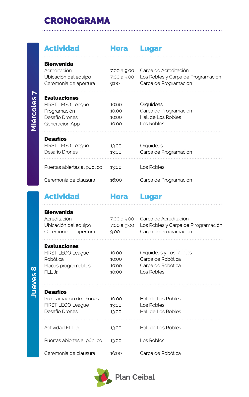 Se trata de un concurso mundial de Robótica que en Uruguay se celebra durante la Olimpíada de Plan Ceibal. 44 equipos deberán completar la mayor cantidad posible de desafíos con su robot diseñado con piezas y software LEGO, en un plazo de dos minutos y medio. El tema de este año es "En órbita". Los equipos ganadores representarán a Uruguay en competencias internacionales.