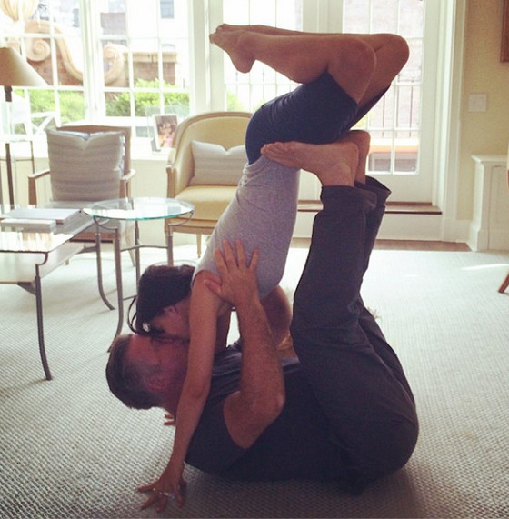 Sobre escaleras, a bordo de un crucero, en vehículos o en la vía pública, la joven esposa del actor de 56 años incluso publicó una imagen realizando una figura de yoga con él, para celebrar su segundo aniversario de casados.