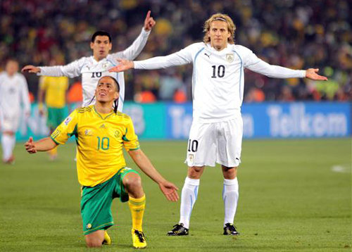 Forlán anotó dos goles decisivos para la victoria celeste ante los anfitriones. EFE