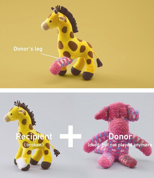Por estos días están llevando adelante una nueva y llamativa campaña. Dar nuevos miembros a peluches "mutilados" para que estén nuevamente completos. Las piezas de recambio provendrían de peluches "muertos" (la expresión usada es "Queridos pero que ya no juegan más").