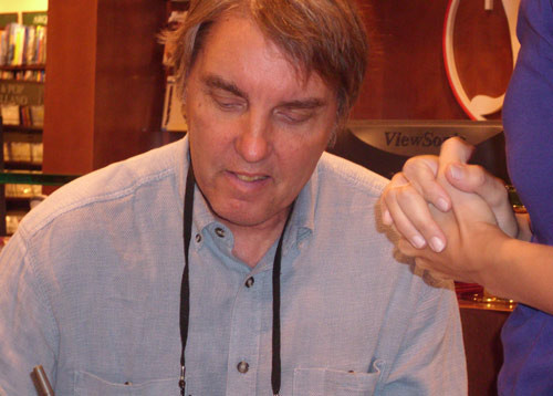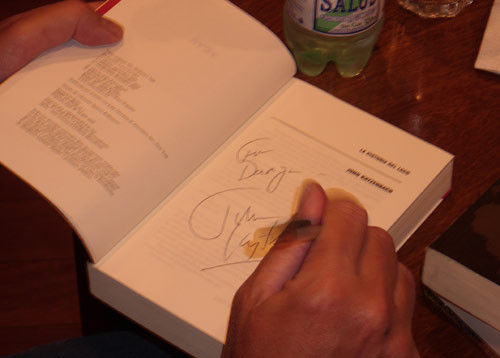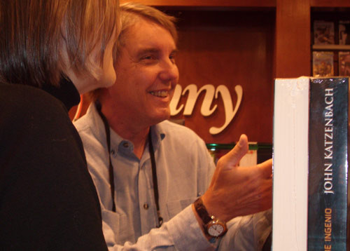 Katzenbach llegó a la librería junto a su esposa Madeleine Blais, también escritora y periodista, ganadora del Premio Pulitzer en 1980. Vestido con pantalones vaqueros y championes deportivos, el escritor de bestsellers se mostró distendido y amable, conversando - traductor mediante- con quienes se acercaron a solicitarle autógrafos.
