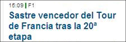(El País. Sastre superó a todos sus competidores ciclistas mediante un simple truco: utilizó el Ferrari de Felipe Massa)