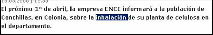 (El Espectador. Esta gente de Ence no se anda con doble discurso como los colegas de Botnia. Nada de eso que la celulosa no contamina: ya están informando a la gente de Conchillas para que se fume una buena chimenea)