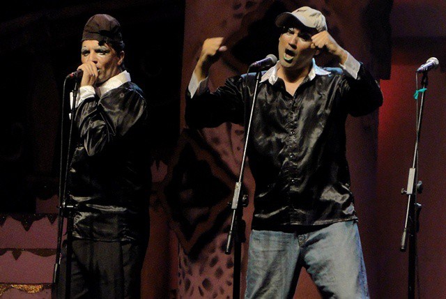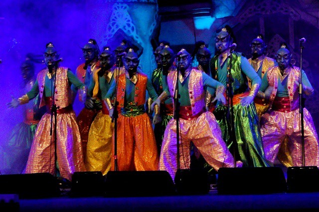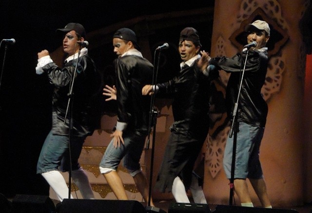 La presentación, donde los genios de la lámpara toman el mando de la escena, está realizada con poca creatividad coreográfica, la cual luego levanta con la llegada de las parodias donde se juega mucho con el contenido de las canciones.