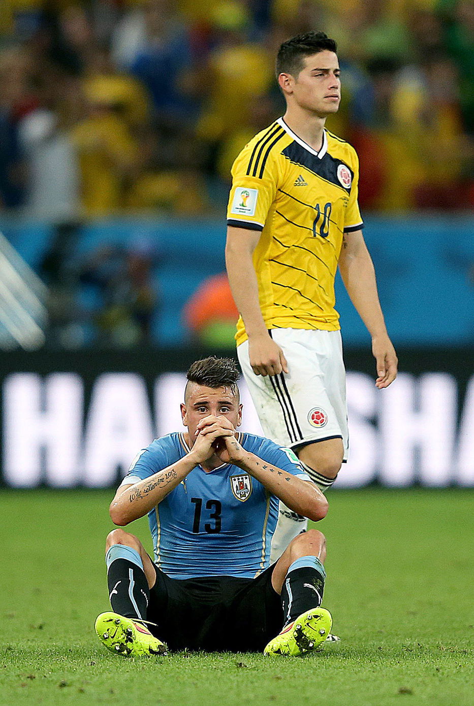 La selección uruguaya se despidió del Mundial dejando todo, y la desazón de la derrota por 2-0 ante Colombia se pudo ver en el rostro de los jugadores. En la cancha, Cristian Rodríguez, José María Giménez, Abel Hernández y el resto del plantel no disimularon su tristeza. Galería.