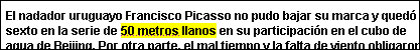 (Montevideo Portal. Picasso corrió los 50 metros llanos mientras sus competidores nadaban en modalidad libre. Quedó sexto de todos modos. Gracias Jorge)