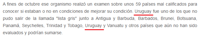 (Montevideo Portal. Uno de los dos Uruguay aparentemente saldría de la lista gris. Gracias Líber)
