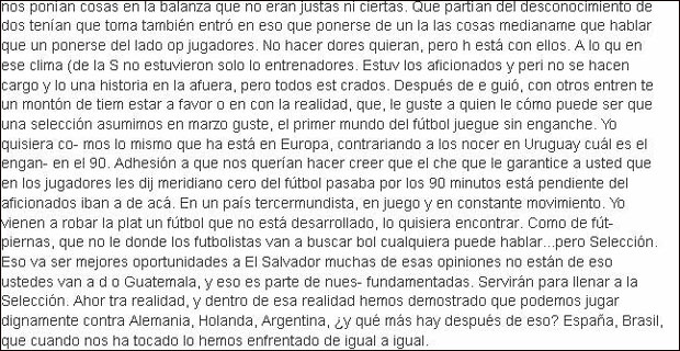 (La República. Sobre conferencia de prensa de Tabárez, o sobre cómo no es recomendable tomar notas en el mismo artículo de Word que luego se sube como nota. Gracias Federico)