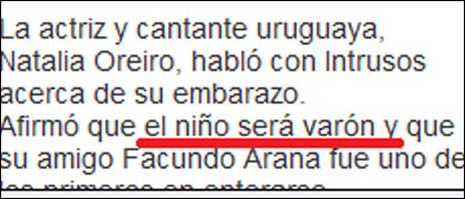 (Primicias Ya. Eso es una primicia. Si es niño, hay altas probabilidades de que sea varón. Gracias Christian)