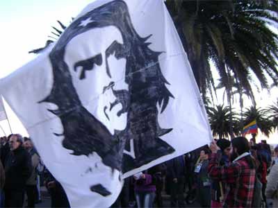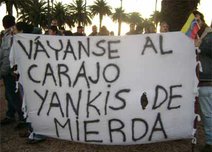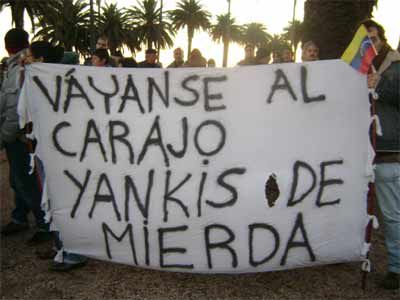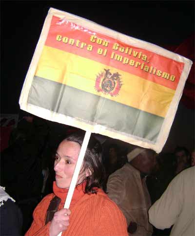 "Evo sí, yankees no", "Bush, fascista, vos sos el terrorista", rezaban algunos de los cánticos coreados por la multitud.