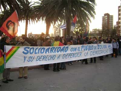 "El Gobierno de la República Oriental del Uruguay expresa su total respaldo y solidaridad al Gobierno y al Presidente Evo Morales, elegidos libre y democráticamente por el pueblo de la República de Bolivia.