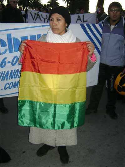 Entre la concurrencia había varios ciudadanos bolivianos, que, conmovidos, manifestraon en todo momento su apoyo a Evo Morales. Uno de ellos, de nombre David y apodado "Nico", leyó una proclama donde se aprobaba la medida tomada por Morales de expulsar al embajador estadounidense en su país, entendiendo que había sido un factor de desestabilización, tanto como algunos grupos con gran poder económico, que anteponen sus intereses a los de la nación.