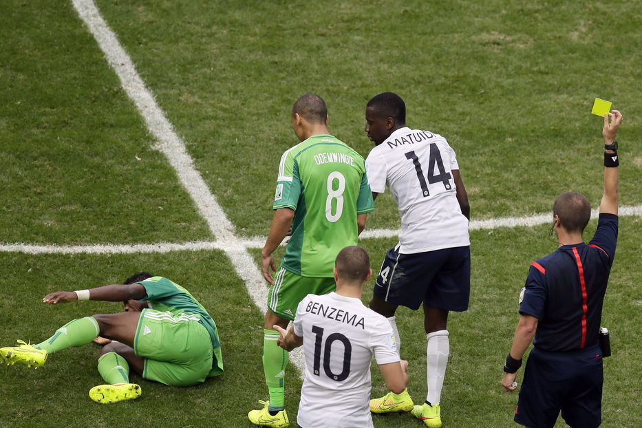Para el segundo tiempo, Nigeria no repitió lo bueno que realizó en la primera parte y el dominio pasó decididamente al lado de Francia, que debió quedarse con 10 hombres a los 54’ por una durísima plancha de Matuidi sobre Onazi que el árbitro juzgó con tarjeta amarilla. El volante africano tuvo que salir lesionado y su equipo se quedó sin una de sus mejores piezas en zona de volantes.