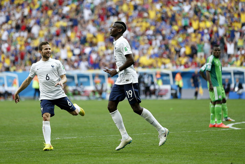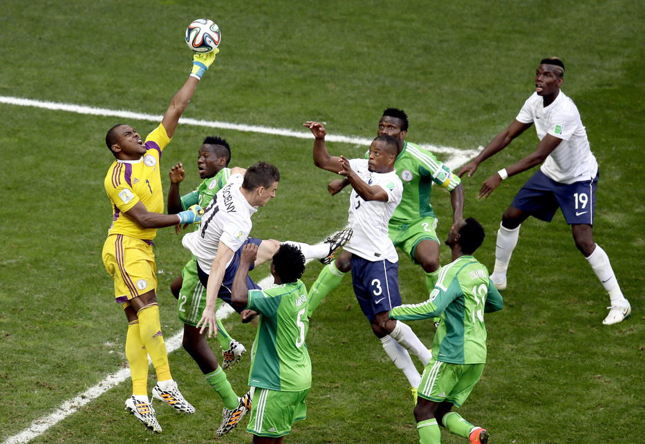 Francia volcaba la cancha sobre el arco de Enyeama, quien en cuestión de minutos pasó de héroe a villano. El arquero nigeriano era la figura del partido con muy buenas atajadas, y cuando se vio superado el travesaño evitó un derechazo tremendo de Cabaye. Sin embargo, falló en un tiro de esquina y le costó carísimo, ya que despejó a medias un centro y el que lo aprovechó fue Pogba, quien conectó de cabeza al arco vacío y selló el 1-0.