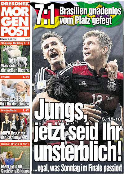 Mundial: la prensa tras el 7-1 alemán