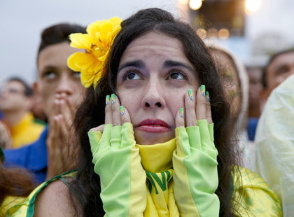 El sufrimiento de una hincha brasileña. Foto: EFE | Kamil Krzaczynski